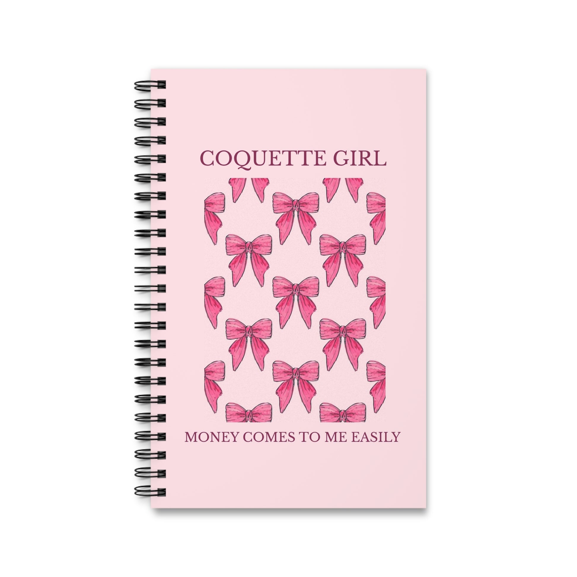 Coquette Girl Spiral Journal — Pink Bow Notebook with "Money Comes to Me Easily" Affirmation