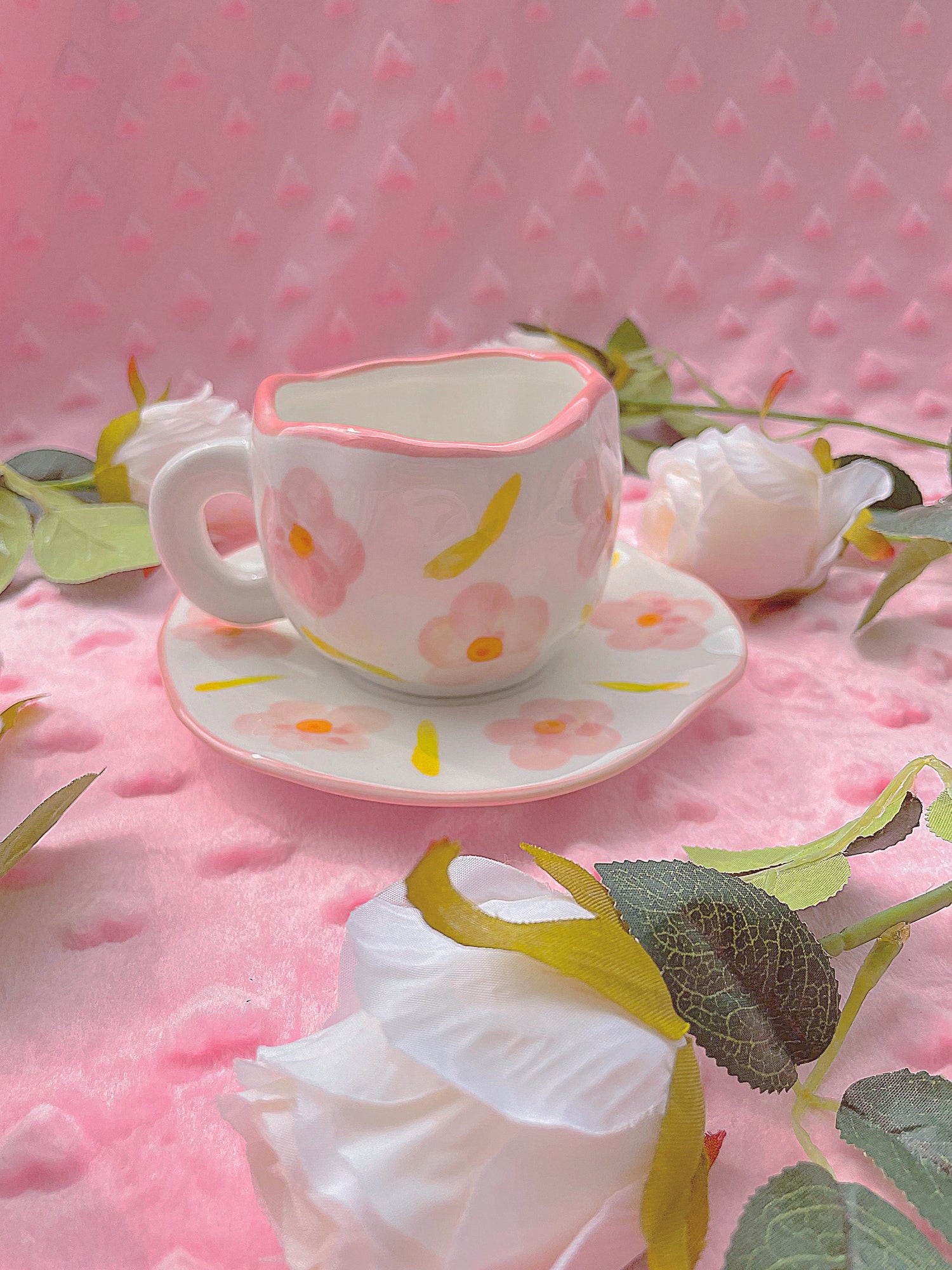 This coquette core mug is ideal for coffee, tea, or even a small dessert plate for your pastries. Pair it with the matching saucer to complete your coquette core aesthetic tea-time experience.