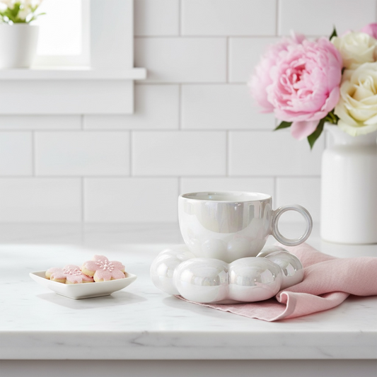Pearl White Cloud Flower Mug
