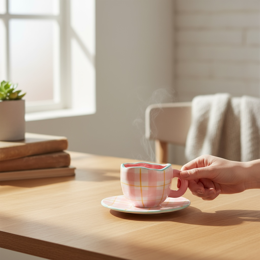 this retro plaid handmade Coffee Mug is perfect for a vintage Coquette Aesthetic lifestyle. Enjoy your coffee in this handmade mugs pottery with a vintage touch.